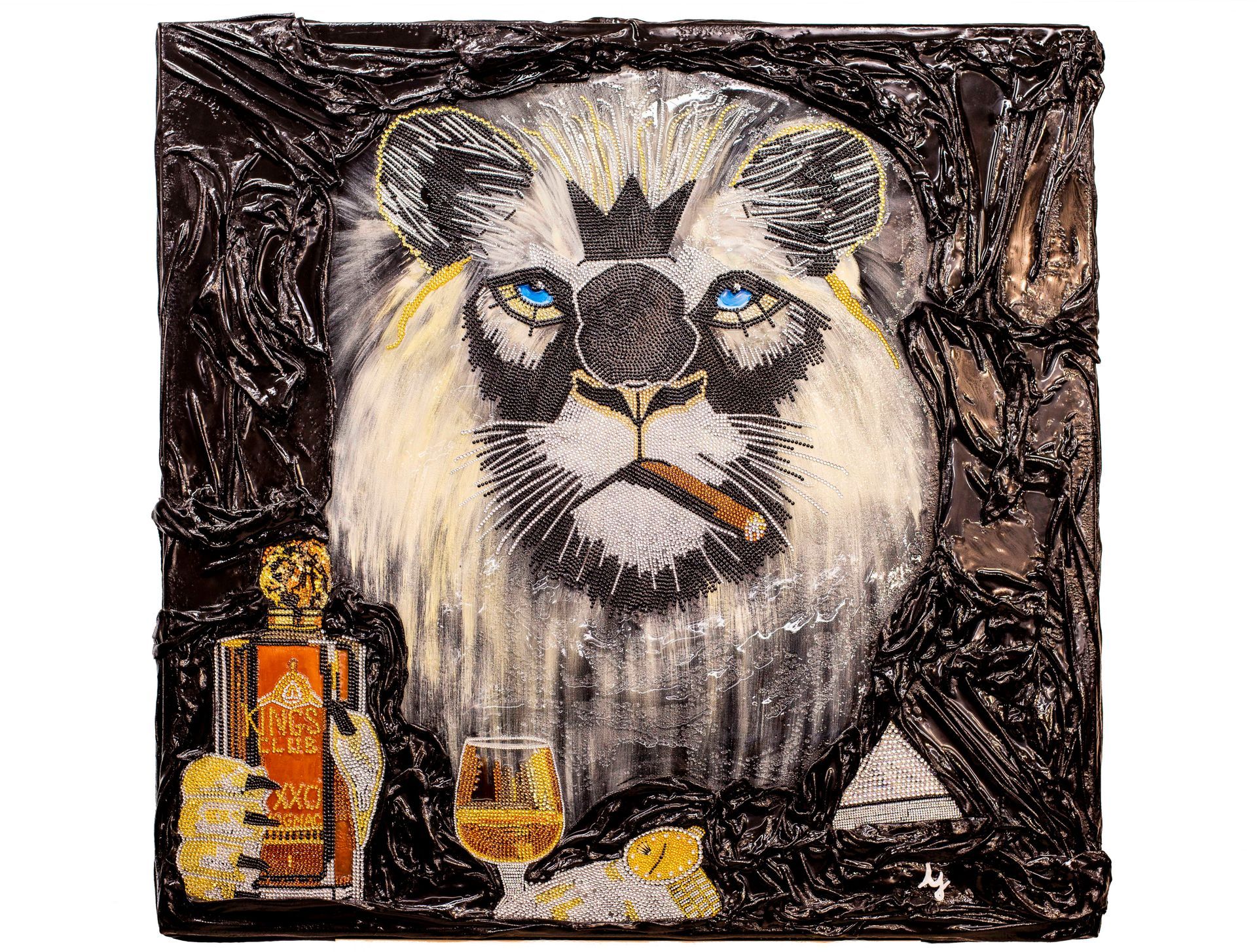 strass posés un à un à la main et même incrustation d'objets de luxe authentiques.